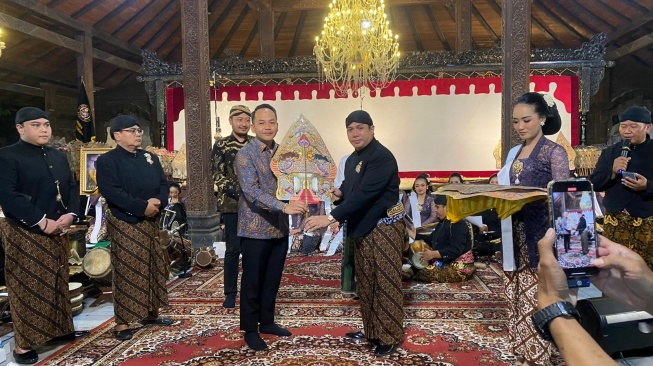 SuaraSurakarta.id - Wali Kota Solo, Respati Ardi menghadiri peringatan 100 hari kepergian Ki Anom Suroto yang digelar keluarga almarhum di Kebon Seni Timasan pada Sabtu (24/1/2026) malam. Tak sendirian, Respati datang bersama istrinya, Venessa Winastesia.