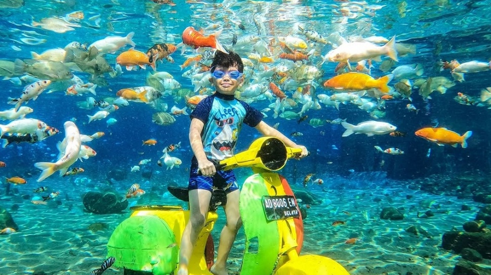 Anda bisa berenang, snorkeling , atau bahkan diving di antara ikan-ikan yang berenang bebas dan properti unik di dasar umbul.